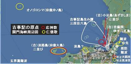 古事記のある記述から「イザナギ・イザナミの島生み譚のオノゴロシマは宗像沖ノ島」が比定論証できる。そこから更に「イザナギ・イザナミの高天原は対馬」が導出できる。少なくも古事記はそう読めるように記している。